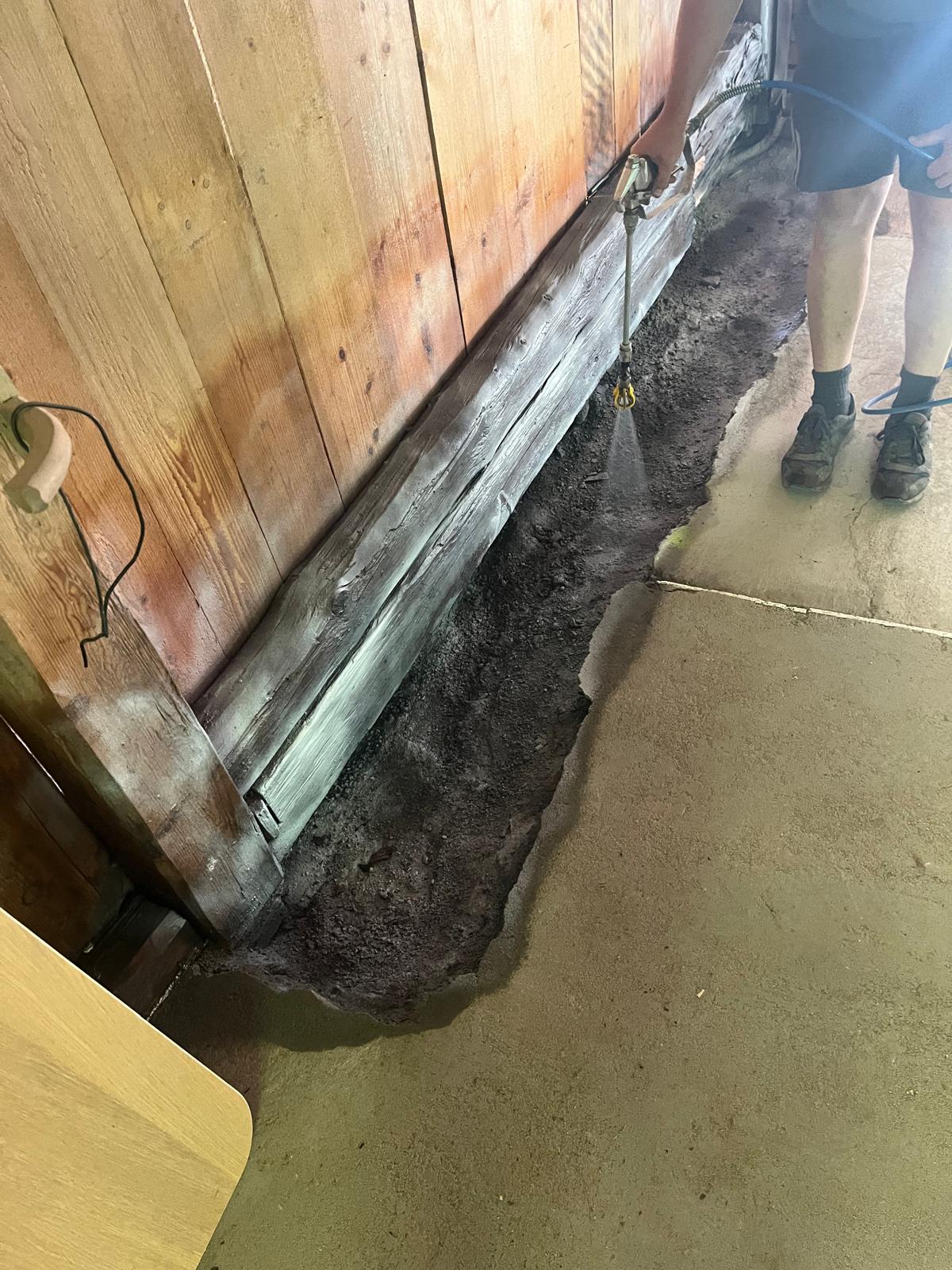 Dřevomorka se objevila v místě nově vylité betonové podlahy, kde nebylo správně vyřešeno odvodnění. Vlivem zvýšené vlhkosti a srážení vody vznikly ideální podmínky pro rozvoj dřevomorky v kontaktu s dřevěnými konstrukcemi.