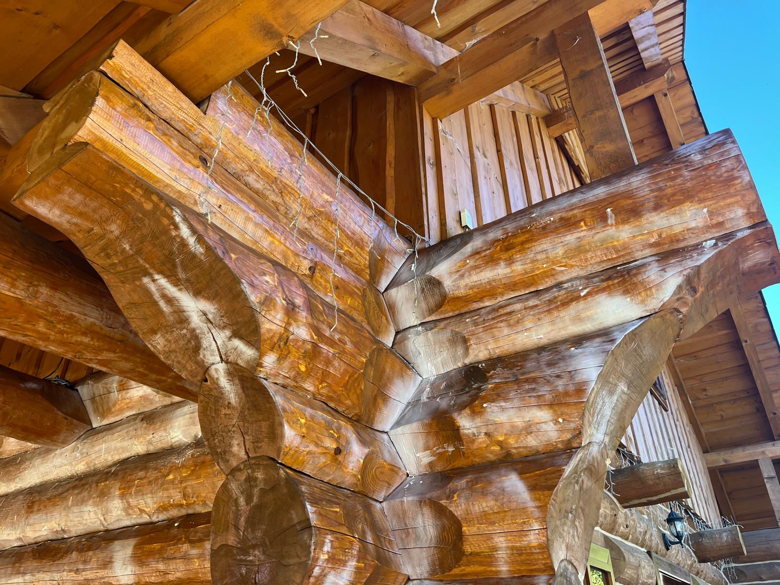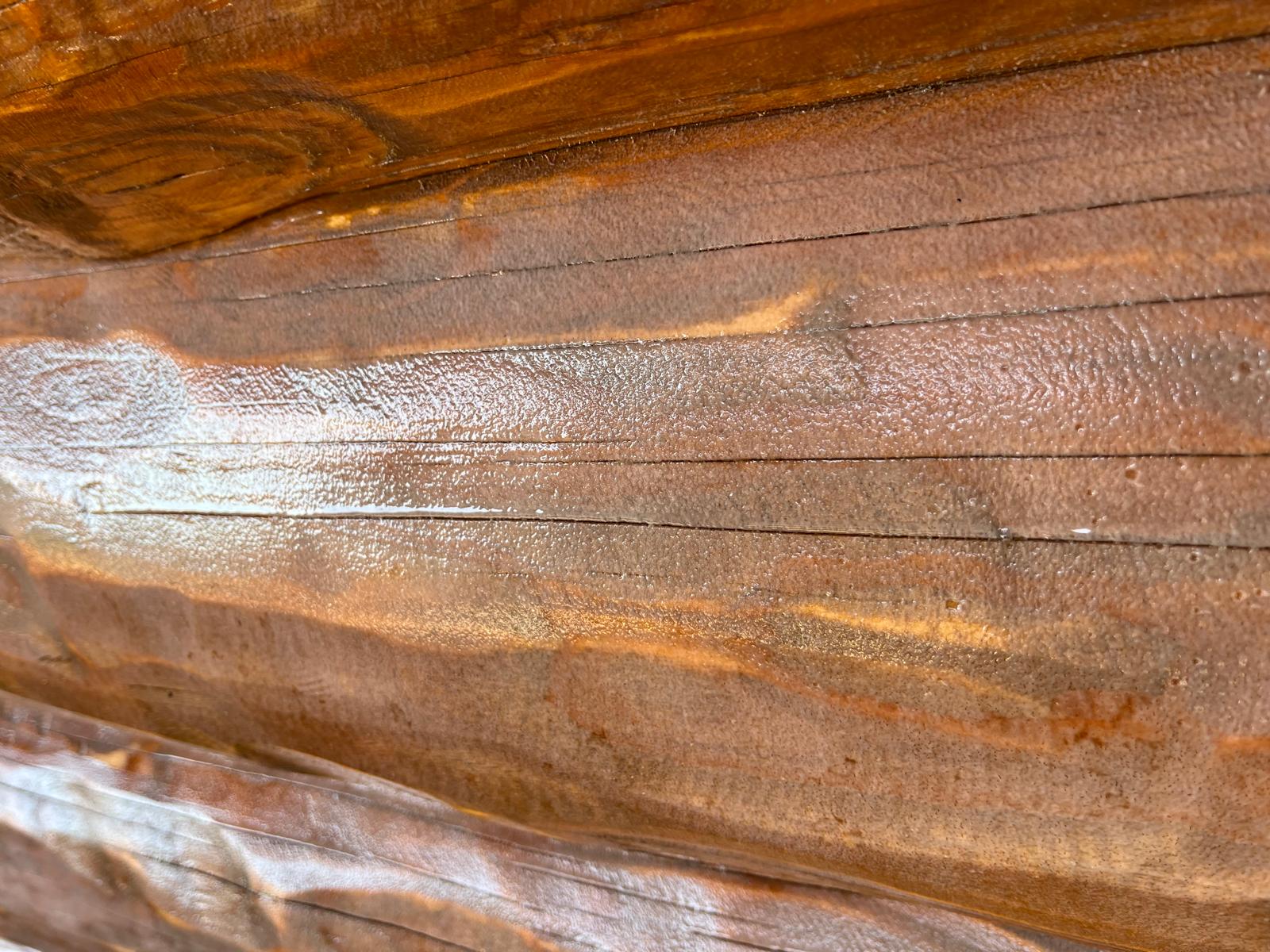 Srub byl původně opatřen olejovou lazurou, kterou bylo nutné kompletně odstranit. Následovalo důkladné broušení a příprava podkladu, aby bylo možné správně a účinně aplikovat ochranné prostředky.