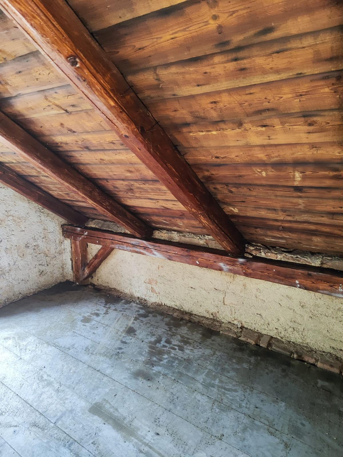 Dřevěná střešní konstrukce byla napadena dřevokazným hmyzem, a proto bylo nutné provést kompletní technologický postup. Práce začaly mechanickou očistou dřeva, odstraněním povrchových nečistot a uvolněných částí, aby byla konstrukce připravena na následnou aplikaci ochranných prostředků.