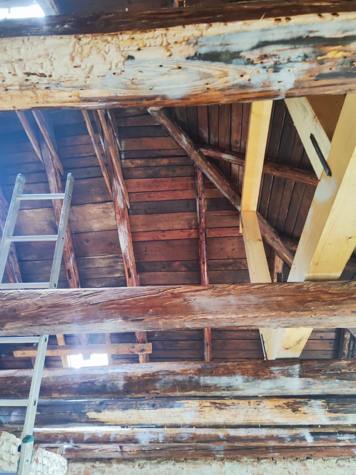 Při kontrole bylo zjištěno napadení krovu dřevokazným hmyzem – tesaříkem krovovým. U některých prvků již bohužel nebyla možnost účinného ošetření, a proto byly tyto části krovu odborně vyměněny a konstrukčně vyztuženy.