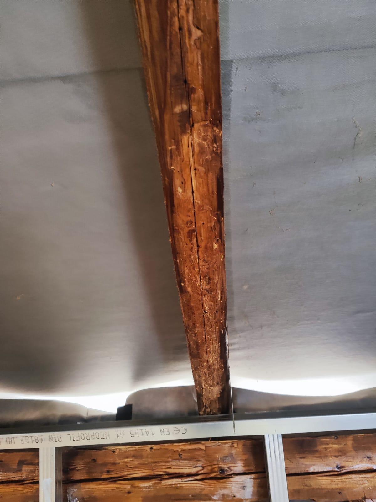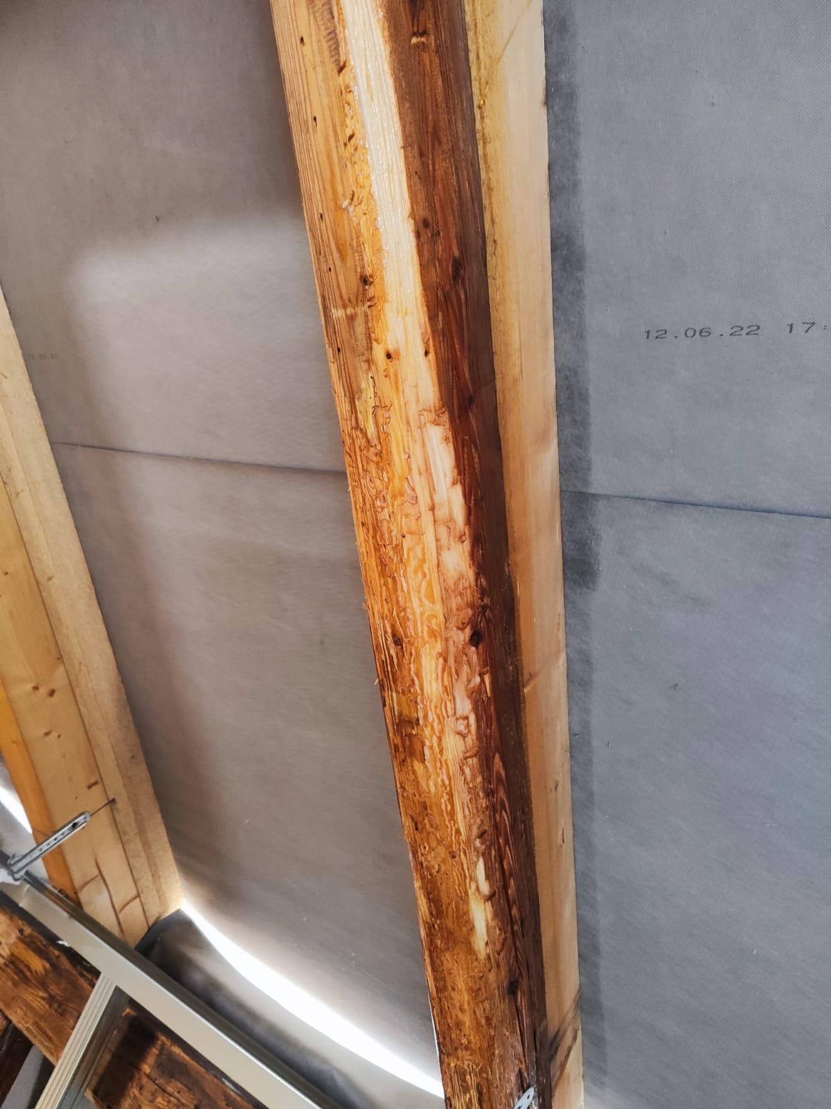 Při vstupní kontrole byly na dřevěných prvcích zjištěny typické známky aktivního napadení, zejména výletové otvory, dřevní prach a lokální poškození povrchu dřeva. Vzhledem k plánovaným stavebním úpravám bylo nezbytné problém řešit ještě před zaklopením konstrukce, kdy by pozdější zásah byl výrazně komplikovanější a finančně náročnější.
