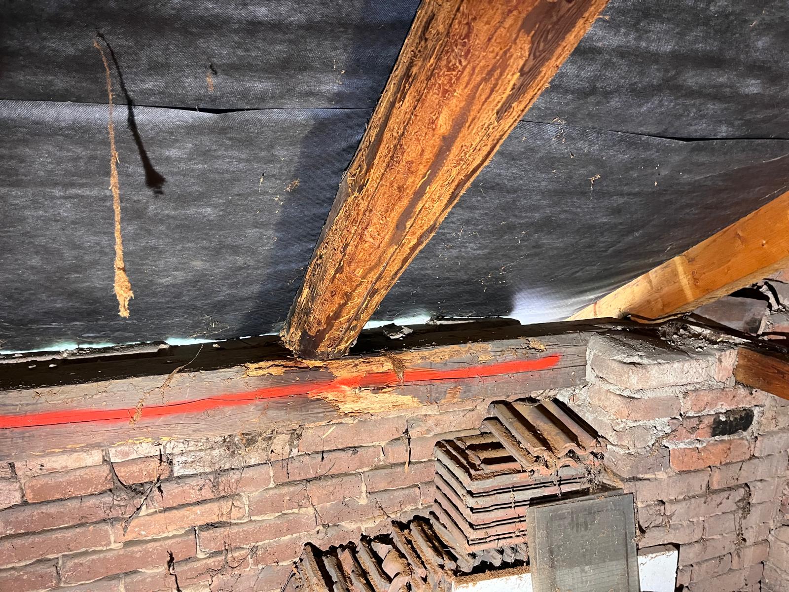 Na objektu byla nedávno položena nová střešní krytina, přičemž při předchozích pracích došlo pouze k výměně několika nejvíce poškozených trámů. Zbytek konstrukce zůstal zachován, i když byl její technický stav již výrazně oslabený. Takový přístup může na první pohled působit jako úspora, ale z dlouhodobého hlediska může představovat riziko pro celkovou stabilitu střechy, například při vyšším zatížení sněhem.