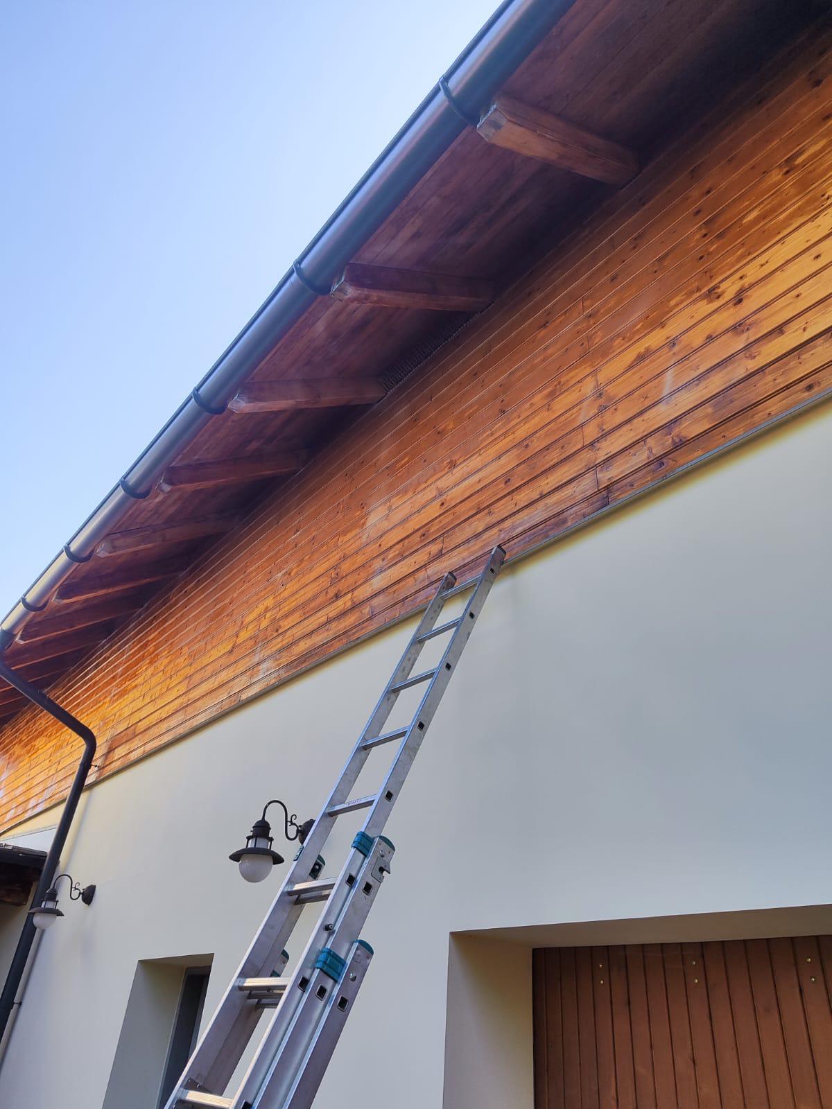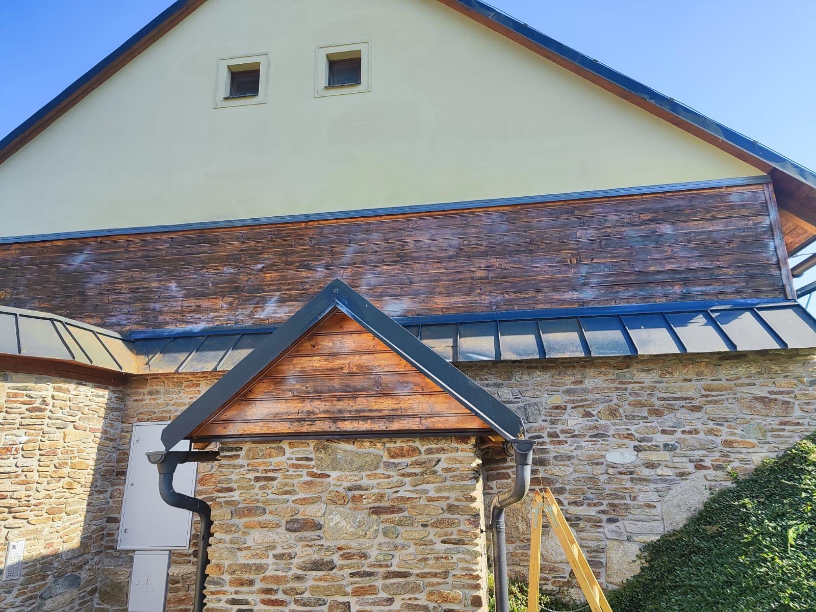 Závěrem byl aplikován nový nátěr v odstínu dle přání majitele, díky kterému došlo ke sjednocení celého obložení a výraznému zlepšení celkového vzhledu stavby. Výsledkem je obnovené, chráněné a vizuálně sjednocené dřevěné obložení, které bude sloužit další roky bez nutnosti výměny.