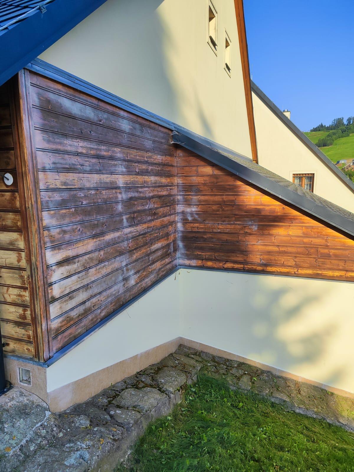 ato realizace proběhla v lokalitě Dolní Morava, Pardubický kraj. Jednalo se o renovaci dřevěného obložení na zemědělské usedlosti, kde bylo cílem obnovit vzhled dřeva a zároveň zajistit jeho dlouhodobou ochranu.