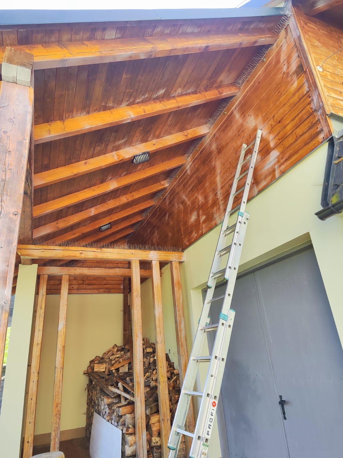 Prvním krokem bylo odstranění starých nátěrů a důkladné zbroušení všech povrchů, aby bylo dřevo připravené na další postupy. Po mechanickém očištění následovalo ošetření proti dřevokaznému hmyzu, které je u starších objektů klíčové pro zachování funkčnosti dřevěných prvků.